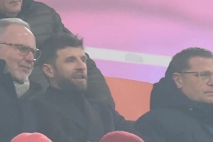 体育资讯12月15日讯 德甲第14轮比赛,拜仁主场2-2战平美因茨,穆勒重返安联球场,与拜仁高层一起观看这场比赛。